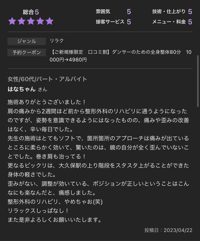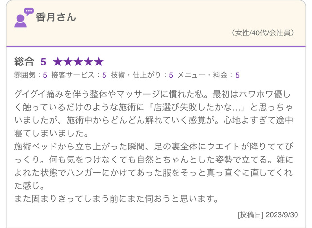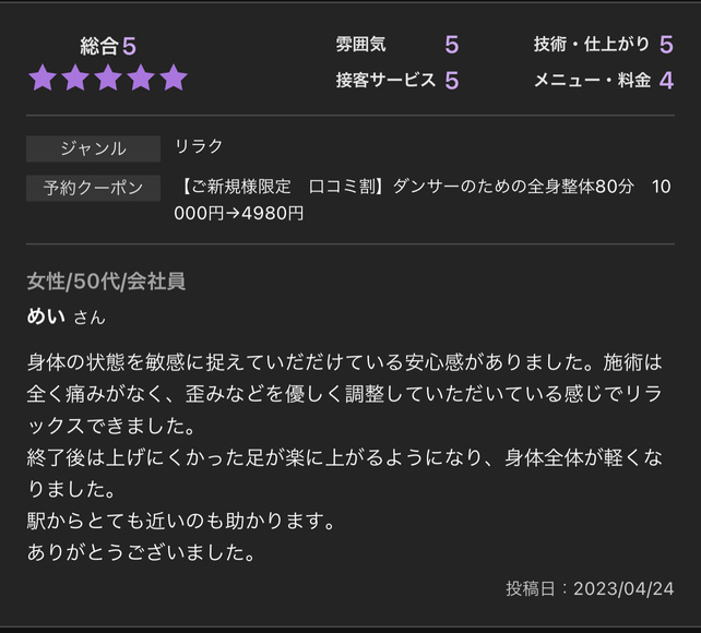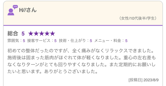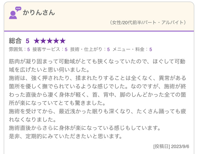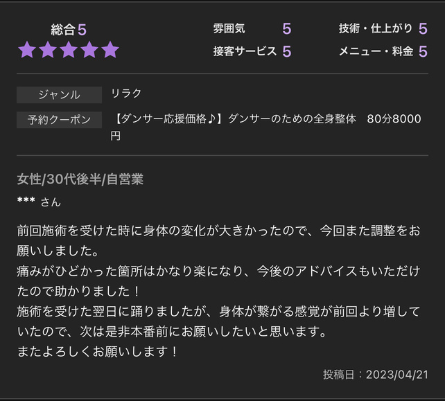 整体サロンNektun’レビュー