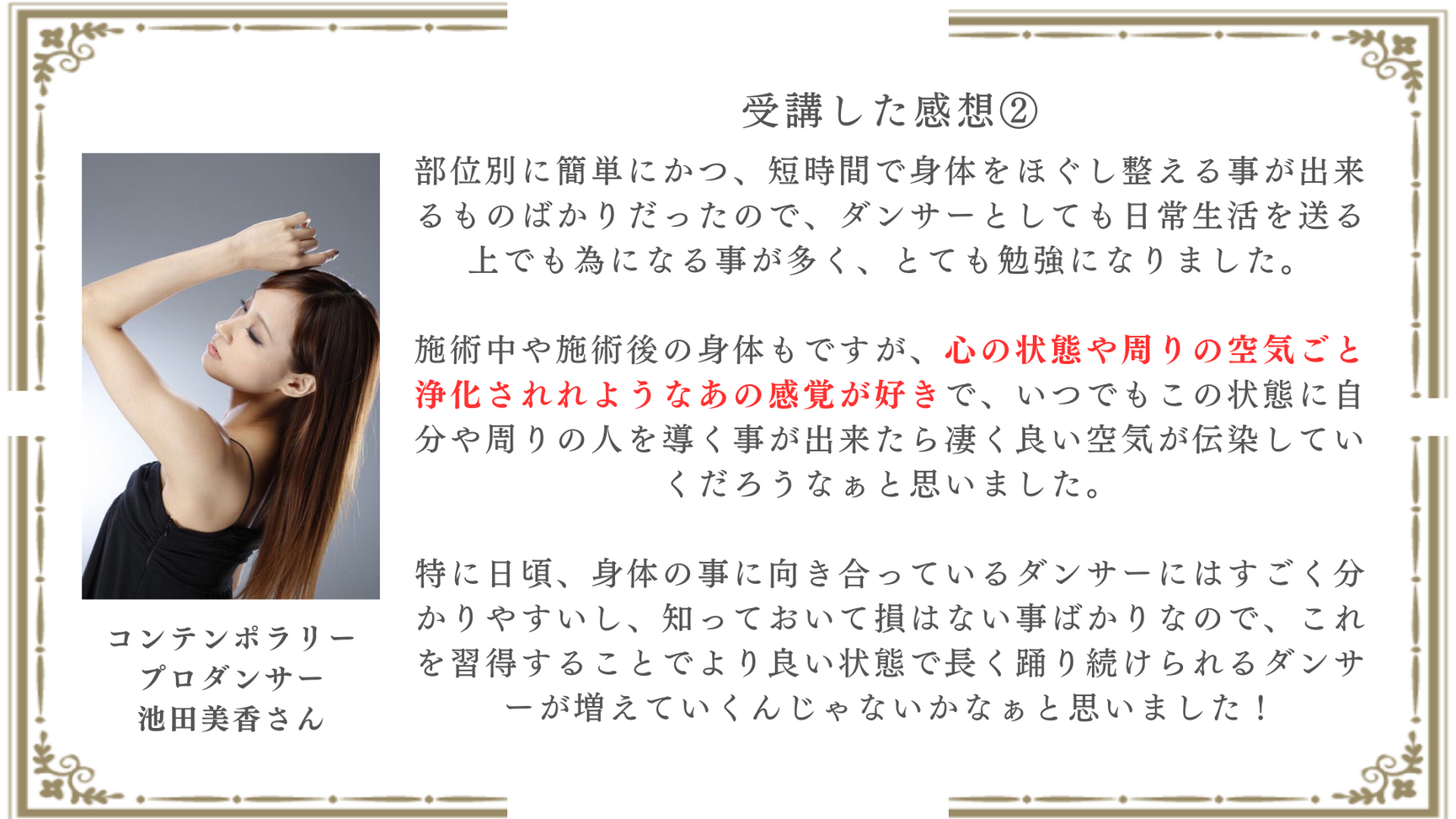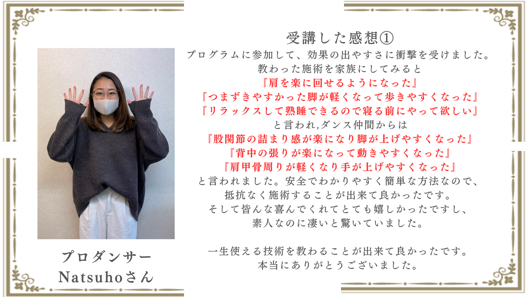 ダンサー整体セラピスト養成講座(対面)を受講した感想